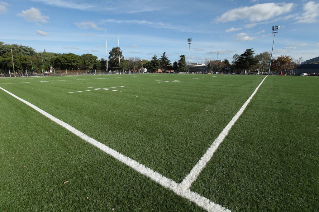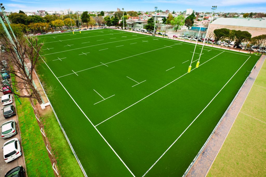 La superficie fue confeccionada con hilado Horse Shoe TENCATE monofilamento 10800/9 denier, el hilado de mayor tecnología y prestaciones que existen para los campos de rugby. El proceso de diseño de la superficie demandó el análisis de las características del predio donde se instaló. En base a ese estudio, se realizaron los movimientos de suelo necesarios para la construcción de la base que recibió al césped sintético. Para su ejecución se construyó una base de tosca compactada con las pendientes necesarias y un sistema drenante, capaz de garantizar que el flujo de agua de lluvia atravesara el césped y la base en sentido vertical y, de ese modo mantuviera el caucho en su posición original evitando el desplazamiento por la acción de la correntada y la posibilidad de que se generan espejos de agua que interrumpieran el juego.