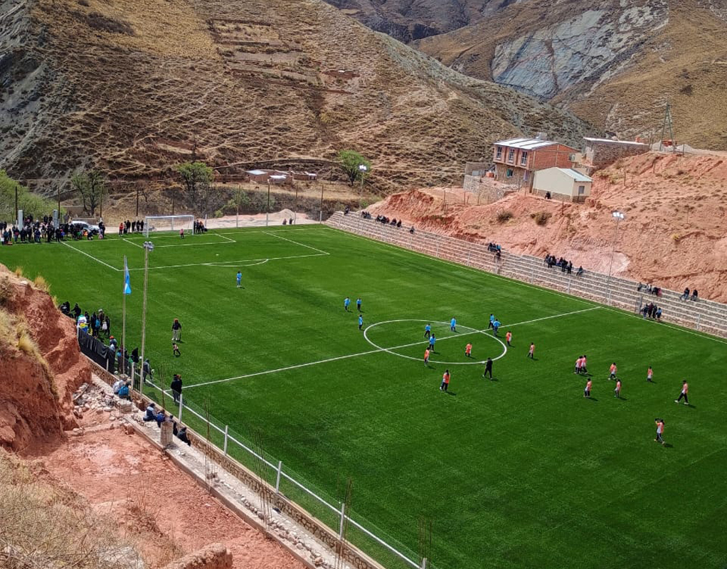 Desarrollamos una cancha de 5.698 m² con nuestro césped sintético THE 50 fibrilado, una superficie resistente y segura para la práctica deportiva. Además de ser un hito en términos de infraestructura, representa una oportunidad única para la comunidad, que ahora dispone de un espacio de encuentro y desarrollo deportivo en un entorno rural, rodeado por el imponente paisaje de la puna salteña.